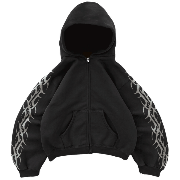 Black Tribal Zip Up Hoodie